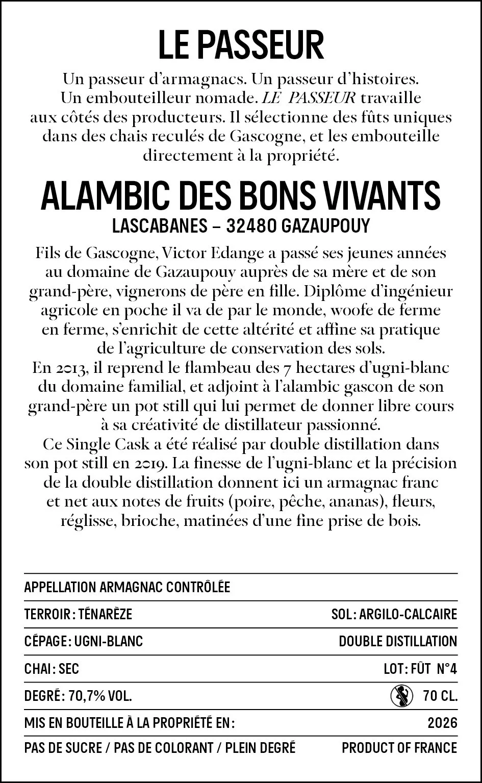 Les embouteillages du PASSEUR - single cask - brut de fût - sans concession.